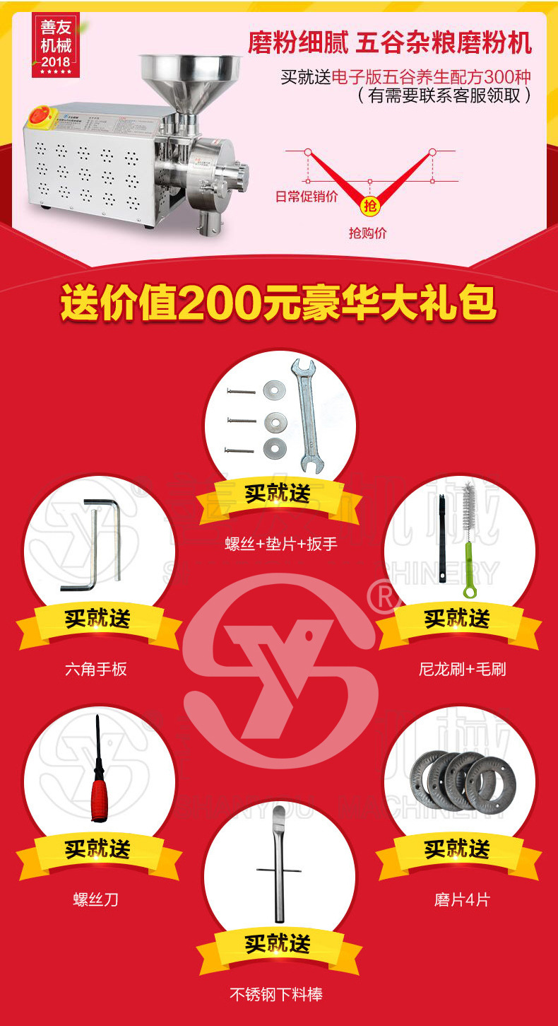 (2014年五谷杂粮磨粉机之冠)-善友首家研发改进,此款机子在原来3000型磨粉机上又改良了许多,满足了客户使用需求,成为大家所极为认可的五谷磨粉设备。