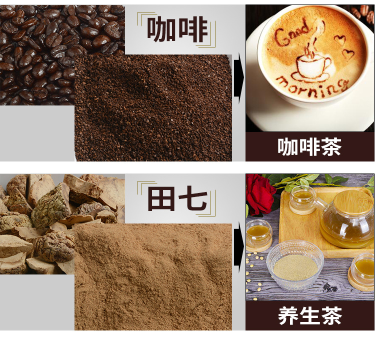 适用范围: 五谷杂粮磨粉机属连续投料式作业,结构豪华大方,噪音低,磨粉细腻,无粉尘,操作简单方便。适用于超市、商场和店铺档口现场加工各种五谷杂粮和中药材使用。五谷杂粮磨粉机加工范围广:各种粮食、中药材含芝麻、核桃、大米、黑米、黄豆、红豆、绿豆、黑豆、花生、莲子、玉米、高粱、大麦、荞麦、燕麦、杏仁、茯苓、红枣、芡实、枸杞、薏仁、山楂、淮山、首乌、红豆、阿胶、乳香、菟丝子、当归、党参、黄芪、等等